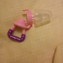 Prevent coughing and choking (or slapping away of the hand) from your little one by using this pacifier to ease your baby into tasting fruit.