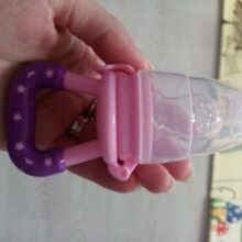 Got this for my 5 month old who just started trying food and has been teething since 3 months with no progress. I used the smallest one with frozen blueberries and she loved it. She can hold it herself with little help and I love that it can be cleaned very easily. We had a mesh feeder and tossed it because it is so hard to clean really well and just gets floppy and gross when the food thaws. This is a much better alternative and great price. My only concern is that the nipple piece can be removed too easily but hasn’t caused any issues yet.